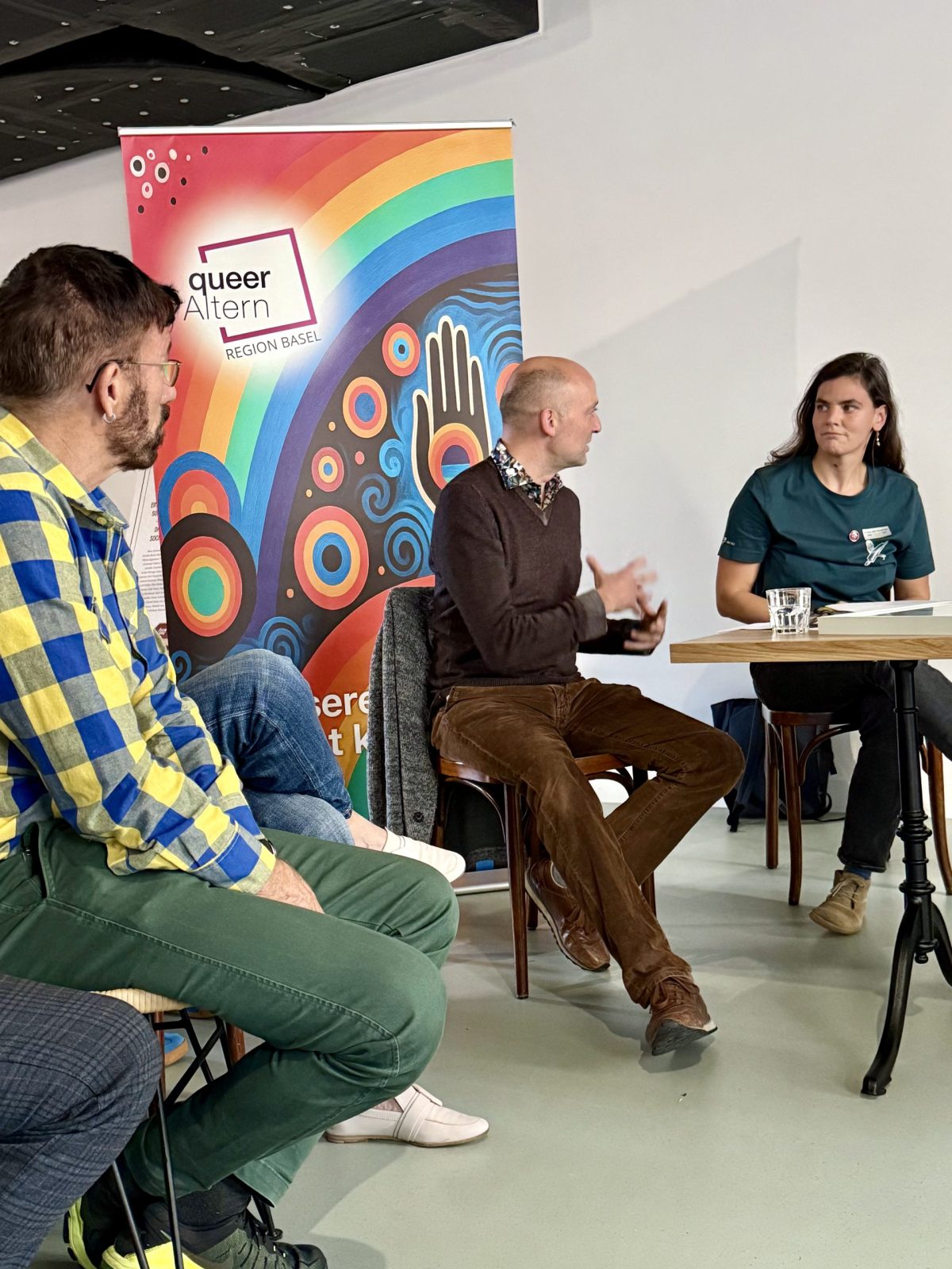 Wir von queerAltern Region Basel waren mit dabei und durften im Rahmen eines Plaudertisches unseren Verein vorstellen. Unsere Co-Präsident:innen Marianne van Vulpen und Matthias Held führten gemeinsam mit Natalie von Tscharner, Verantwortliche Soziokultur im Socin Haus, durch das Gespräch und sprachen über queeres Leben im Alter, Sichtbarkeit und Gemeinschaft.